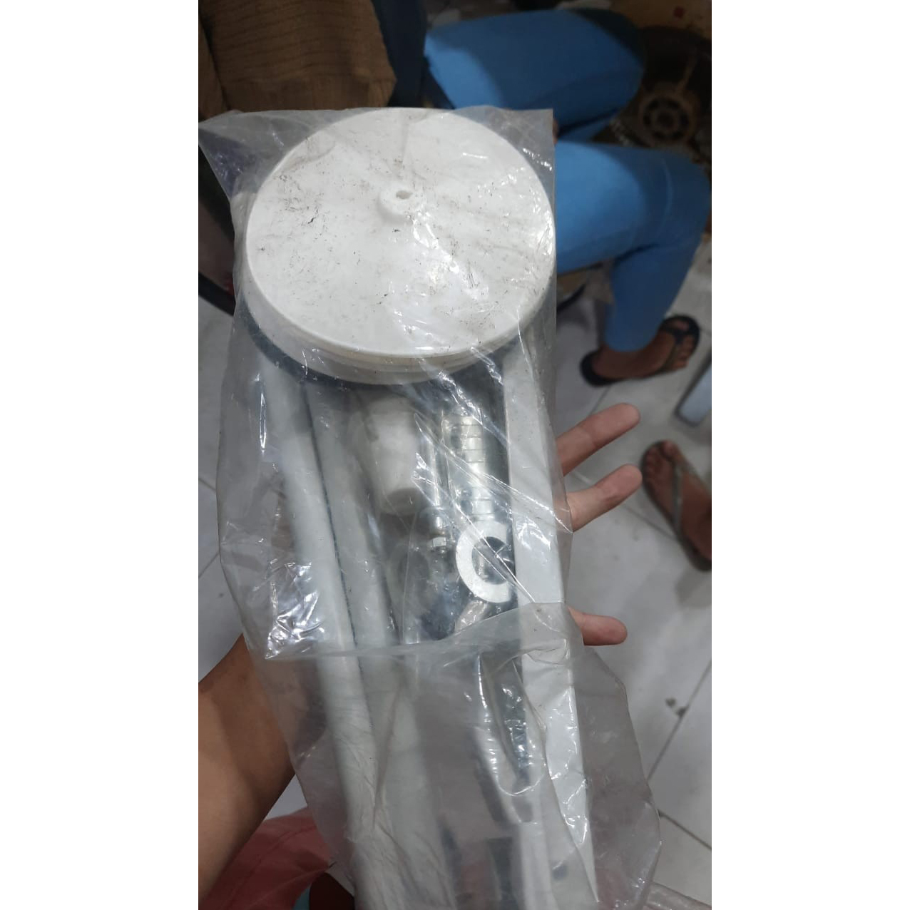 Gagang panjang menyambung dengan stang tiang sepatu berfungsi untuk menaikkan/ menurunkan tiang sepatu ketika pedal kaki pengangkat sepatu ditekan.